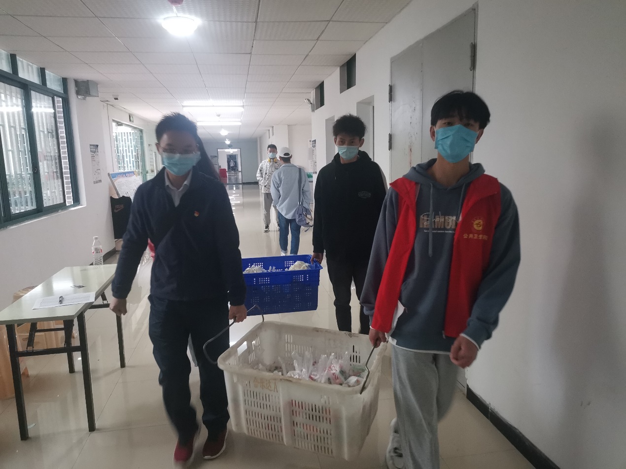 针对当前全国疫情持续多点散发,为切实做好抓牢疫情防控工作,筑牢校园疫情防线,守护师生员工健康安全,同学们积极配合做好临时留观工作。在公司党委的统一安排下,支部党员同志、教师及员工志愿者踊跃报名,积极参与为新同学送餐活动,为同学们排忧解难,保障同学们的日常所需,消除心中所虑。