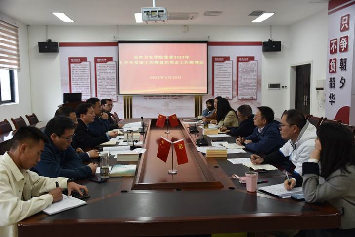 随后,张在金书记传达了学校一季度基层党委(党总支)书记会的会议精神并对第二季度的党建工作提出 “四个抓好”的要求:一是抓好党建工作的基础性工作,严格按照党支部标准化规范化要求打牢基础;二是抓好党建工作的创新性工作,注重党建与业务深度融合;三是抓好主题教育工作,将党建日常性工作与主题教育有机结合;四是抓好党建特色的凝练,按照“一支部一品牌”要求,形成党建品牌,并加大宣传力度。同时,他还结合学院实际就可能出现的意识形态风险点围绕师德师风、网络舆情和网络平台管理、员工的心理健康、招生及评优评奖等方面作了研判并提出要求。
