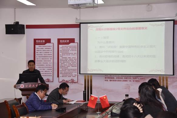 周远忠同志以新国发二号文出台的背景为切入点,讲授了该文件对贵州省未来发展的意义,并指出“四区一高地”,即西部大开发综合示范区、巩固脱贫攻坚成果样本区、数字经济发展创新区、生态文明建设先行区、内陆开放型经济高地,是国家对贵州省未来发展的精准定位。会议号召各位党员在新国发二号文的指引下为贵州省经济社会发展做出自己的贡献。党课结束后,刘俊同志领学了《传承宪法文化,弘扬法治精神》和《中央民族工作会议全国宗教工作会议精神》。