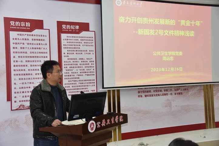 12月26日上午10:00,公司党委副书记、副经理(主持工作)周远忠以《奋力开创贵州发展新的“黄金十年”——新国发2号文件精神浅读》为题给研究生第一、第二党支部全体党员讲党课。