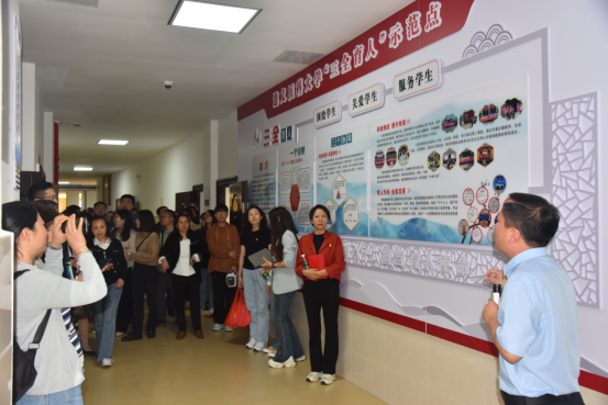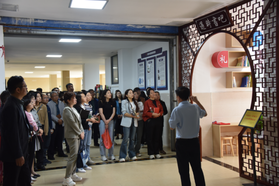 公司党委书记张在金围绕公司党建工作基本情况、院史文化墙建设、“三全育人”阵地建设和党建文化长廊建设四个方面并重点就“1+4”党建品牌打造、“遇时学堂”“遇时书吧”使用等方面作了介绍。期间,参加学校“五个一批”工程创建工作推进会的与会人员还相互交流分享了工作中的好经验和好做法。