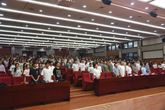 最后,张在金引用习近平总书记在建党100周年讲话中的一段话来结束“开学第一课”——“新时代的中国青年要以实现中华民族伟大复兴为已任,增强做中国人的志气、骨气、底气,不负时代,不负韶华,不负党和人民的殷切希望!”