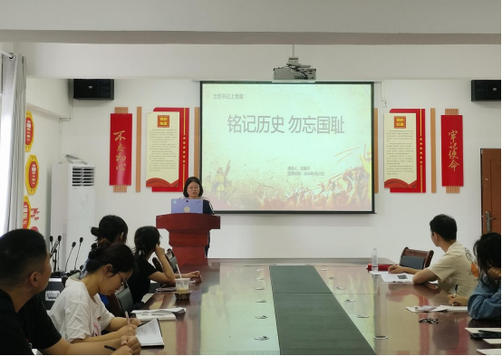 最后,党支部书记张爱平以《铭记历史勿忘国耻》为题,对“九一八事变”进行历史回顾,提醒全体党员“时间可以远去但历史不容篡改,要牢记战争的教训,从困难中汲取向上的力量,和平才会一直和我们同在。”她希望全体青年党员把青春奋斗融入党和人民的事业中,成为实现中华民族伟大复兴的先锋力量。