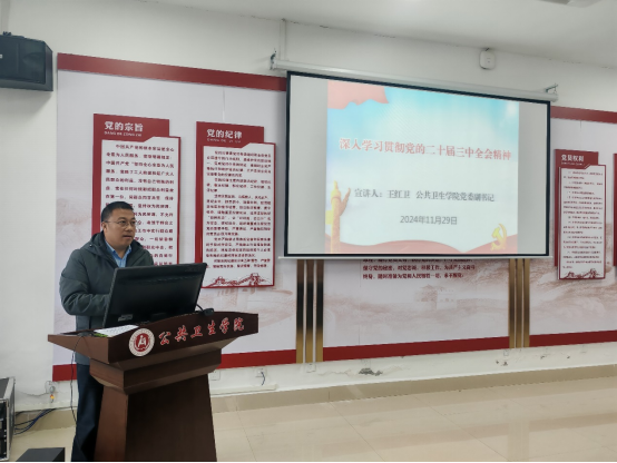 11月29日上午,公司党委副书记王红卫同志以《深入学习贯彻党的二十届三中全会精神》为题在教工第二党支部讲授专题党课,支部全体党员参加本次学习,党支部书记张孝刚同志主持会议。