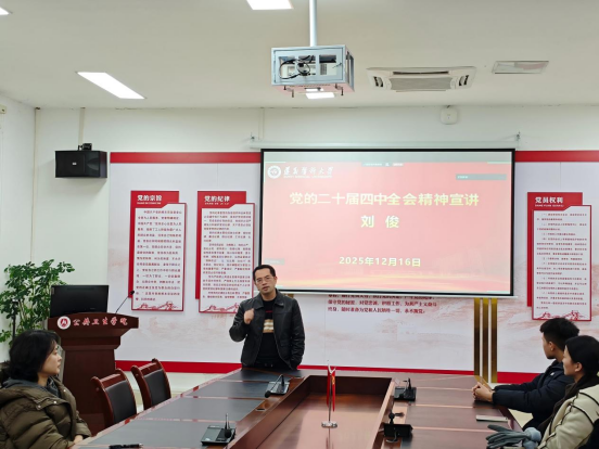 12月16日下午,k1体育研究生党支部在学院会议室专题学习党的二十届四中全会精神,并开展职业规划指导。k1体育副经理刘俊受邀出席并进行宣讲,学院研究生党支部全体党员及入党积极分子悉数参加。活动由研究生党支部书记傅琰主持。