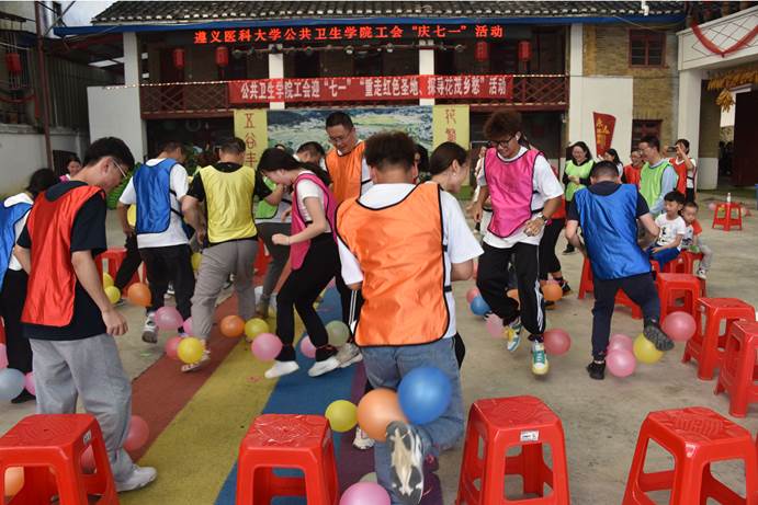 上午,全体人员参观了苟坝会议会址和长征颂体验馆等。下午分组开展了丰富多彩的趣味活动,学院工会副主席胡斌丽主持活动。活动秉着“友谊第一,比赛第二”的原则,开展了欢乐踩气球、一圈到底、珠行万里、两人三足和你来比划我来猜等趣味活动。比赛现场加油喝彩声和欢呼声此起彼伏,各队队员斗志昂扬、信心十足、奋勇争先,拉近了大家的距离,增强了团队合作精神。