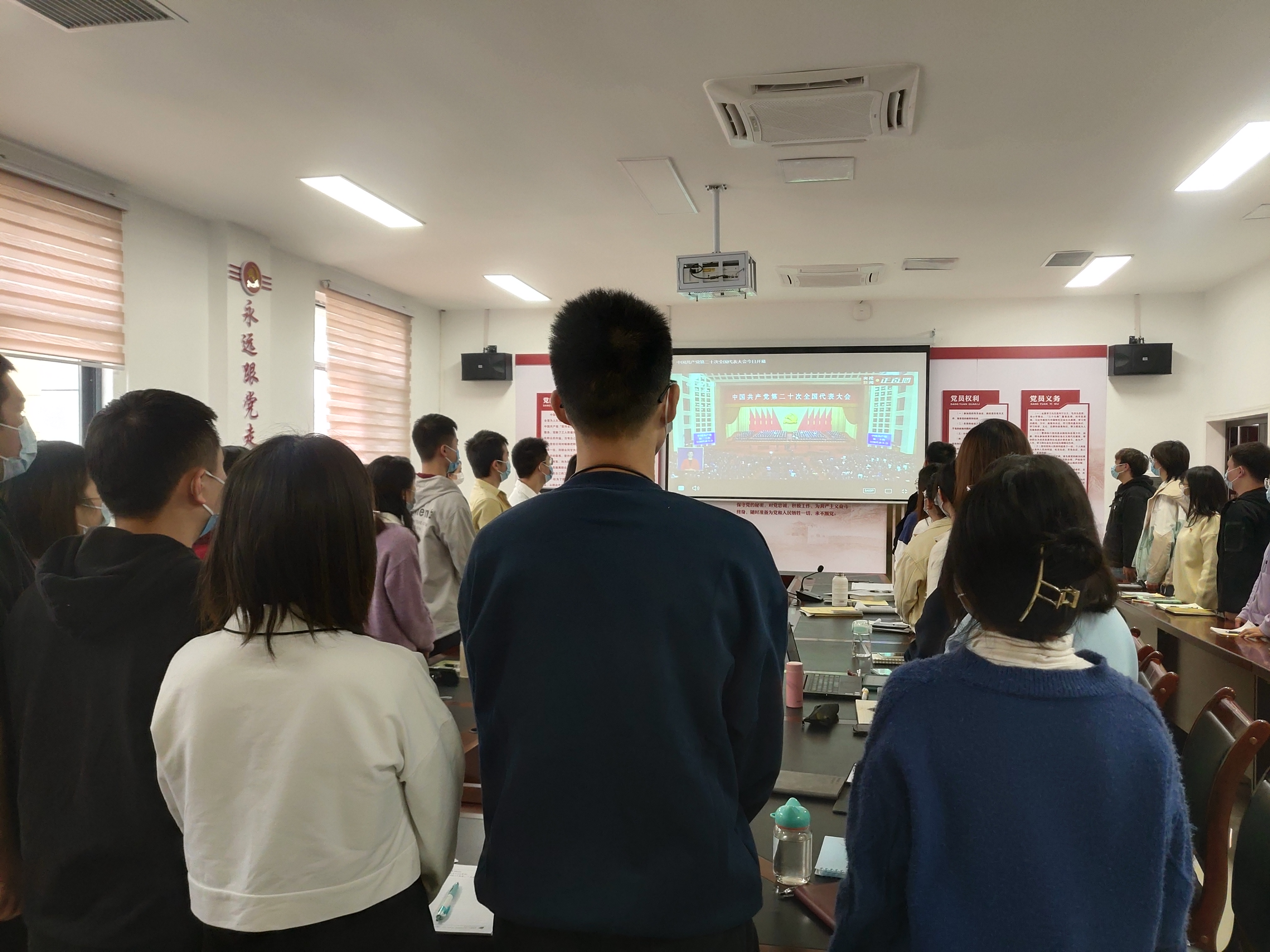 2022年10月16日上午10:00,中国共产党第二十次全国代表大会在北京人民大会堂开幕,k1体育本科生党支部全体党员在公司党员活动室集中收看党的二十大开幕盛况。