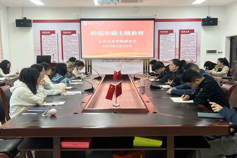 为进一步提升广老员工的反诈意识,提高识别诈骗的能力,积极创建“无诈校园”。3月22日,研究生党支部开展了防范诈骗主题教育活动。学院科技与研究生科副科长粟立羽和全体研究生参加。研究生党支部书记赵兰主持活动。