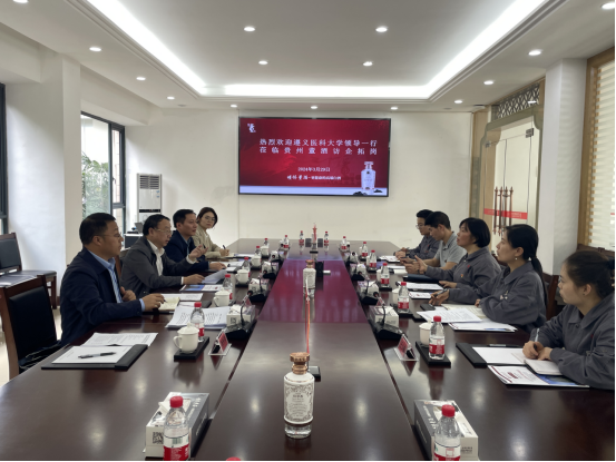 3月29日,公司党委委员、副董事长赵继锋一行到贵州董酒股份有限公司开展“访企拓岗”并召开座谈会。贵州董酒股份有限公司党委副书记、副总裁王莉萍,总裁办主任助理、人力资源总监王海治,公司党委书记张在金、副书记王红卫及双方有关代表参加座谈交流。