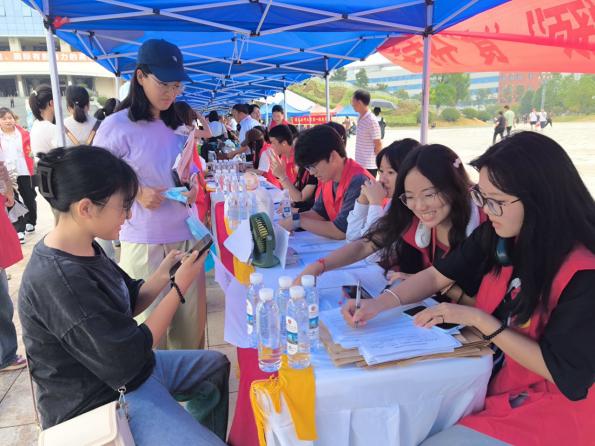 迎新现场,学院工作人员分工明确,按照流程帮助新生快速完成报到程序,并热情为新生和家长送上学院精心定制的瓶装水。辅导员、教师班主任、员工班导对新生提出的问题和疑惑进行耐心地解答。院领导还与新生和家长进行了亲切的交流并合影留念。