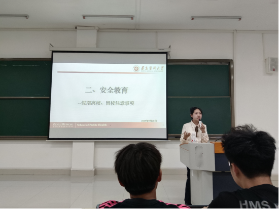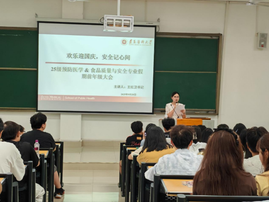 风清遇秋凉,国迎华诞至。为进一步增强同学们的安全意识,确保大家度过一个平安、充实、愉快的国庆与中秋假期,9月28日晚,学院2025级全体同学于第四教学楼38阶梯教室召开假期安全教育年级大会。公司党委副书记兼25级辅导员王红卫、兼职班主任罗意老师、研究生、本科生班导参加会议,会议由25预防班主任王漫老师主持。