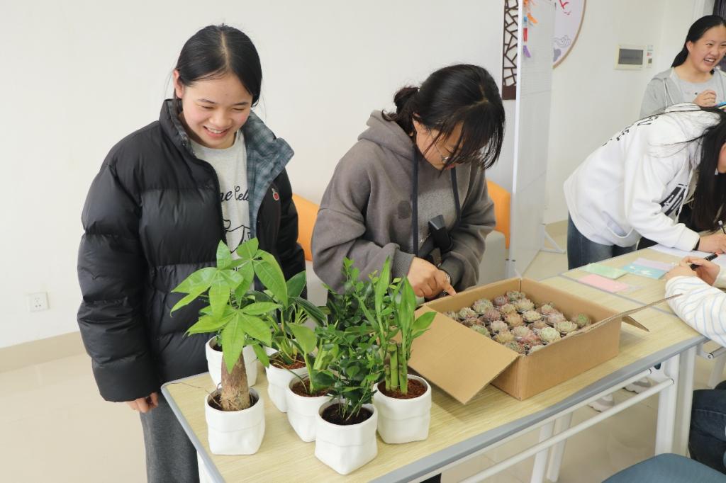 “书香弥漫,共享绿色”打卡换绿植环节吸引了众多同学积极参与。大家通过参与活动打卡,兑换多肉、绿萝等绿植,在轻松愉快的互动中践行低碳环保理念。一盆盆绿植被带回宿舍、教室,为校园增添了盎然生机,也让绿色生活、爱惜环境的理念悄然生根。