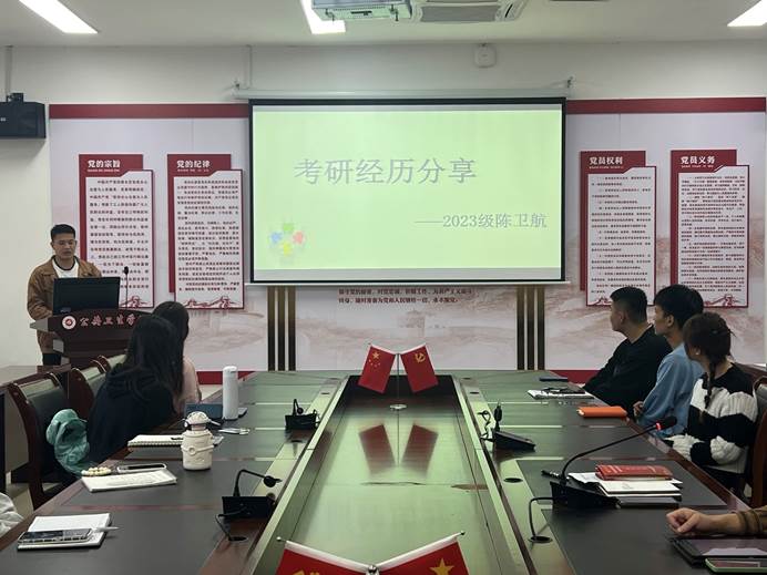 随后,赵兰同志介绍了本次活动的主题和意义,即通过成立“考研帮扶一对一”小组,加强对考研员工帮扶的针对性和实效性。研究生代表陈卫航同学从考研复习攻略和心态调整两个方面做了分享;本科生代表李小鹏同学提出了考研过程中遇到的问题和困惑。随后,双方以座谈的形式围绕“考研与撰写毕业论文的冲突”、“考研复习的时间分配”、“考研软件的使用”等具体问题进行了深入的交流。本科生同学作为学院考研帮扶工作体系中的重要一环,此次活动在增加员工考研知识储备,帮助员工掌握考研动态和提高员工备考积极性等方面具有积极作用。