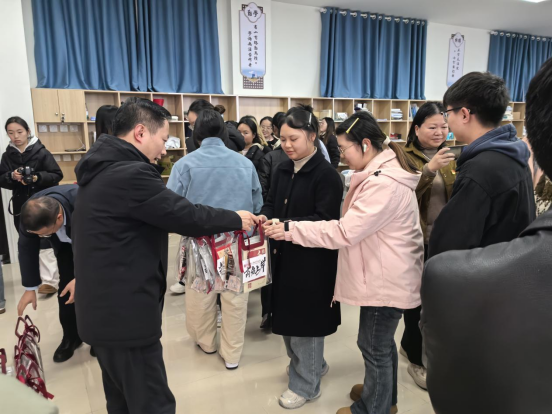随后,学院领导为考研学子一一送上精心准备的“考研温暖加油包”。礼包外包装印有k1体育院徽与醒目的“高分上岸”祝福语,其中装有暖意融融的暖宝宝、舒缓疲劳的眼罩、随手可捏的解压捏捏乐、学院定制书签、寓意好运的精美挂件、书写顺遂的“上岸笔”、实用笔记本以及老师和学弟学妹们手写的祝福信等多样贴心物品。每一份礼物都凝聚着学院对同学们深切的关怀与真挚的鼓励。接过加油包的学子们倍感温暖,纷纷对学院的悉心安排表达了由衷的感谢。