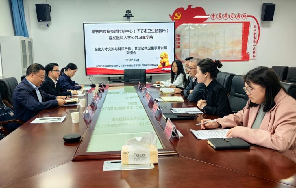 5月6日,王红卫副书记一行赴毕节市疾控中心开展座谈交流。会上,双方围绕人才交流与科研合作、实习基地建设、毕业生就业推荐与人才引进、公共卫生专硕导师联合遴选机制等问题展开深入探讨并取得共识。