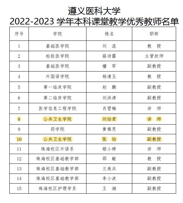近日,2022-2023学年k1十年体育品牌青年教师教学竞赛及优秀课堂教师成绩公布结果,公司刘怡君老师喜获青年教师教学竞赛一等奖,胡颖老师喜获青年教师教学竞赛二等奖;张怡、刘怡君两位老师喜获本科课堂教学优秀教师称号。