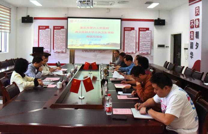 4月19日,重庆市第六人民医公司党委委员、副经理张伦碧一行赴公司就院校深度合作事宜进行调研交流。公司党委书记张在金、经理李岩、正处级组织员罗开源、副经理周远忠、党委副书记王红卫参加座谈会。