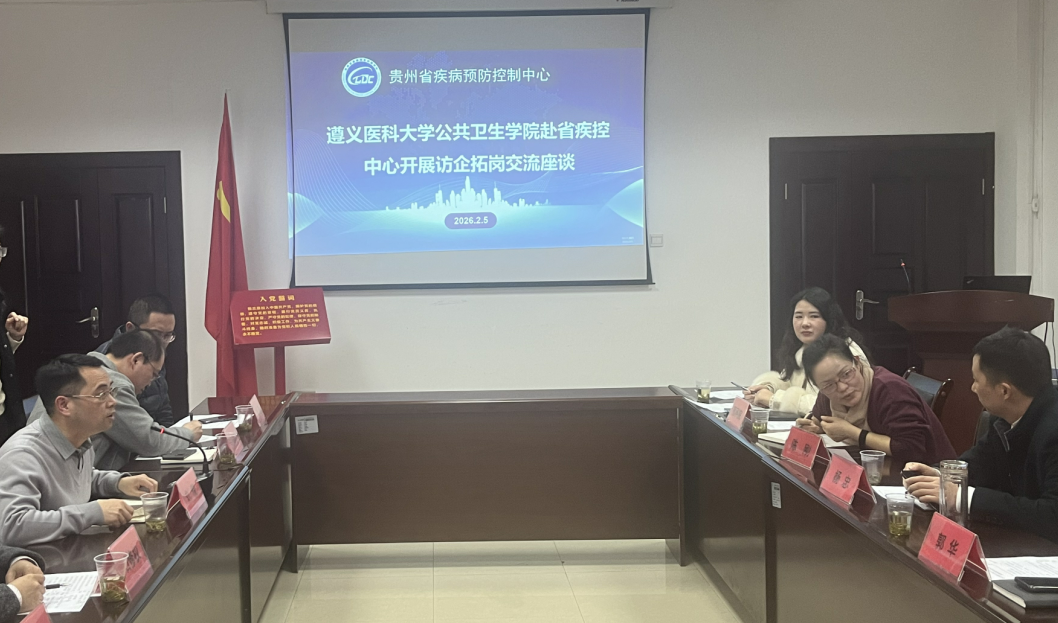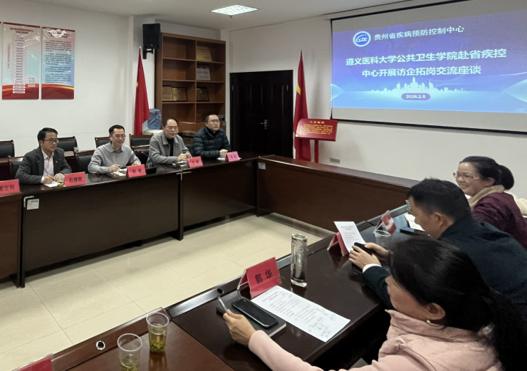 2月5日,为进一步深化校地协同、凝聚合作共识,助推公共卫生人才培养与毕业生高质量就业,公司副经理刘俊、石修权带队前往贵州省疾病预防控制中心(贵州省预防医学科学研究院)交流座谈。座谈会由贵州省预防医学科学研究院负责人陈刚主持。